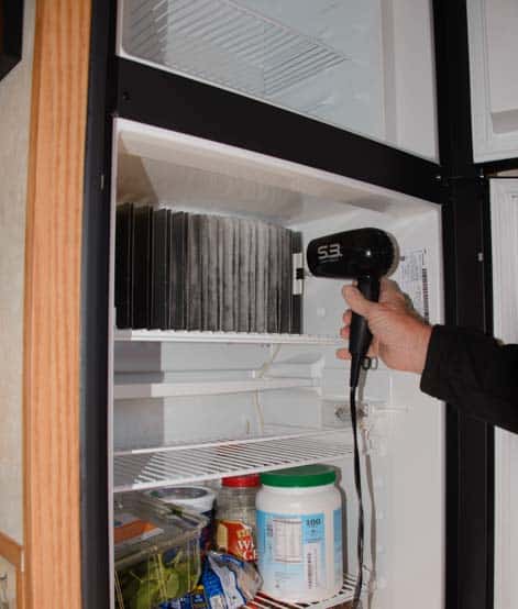If using a hair dryer to defrost an RV freezer sounds unusual to you, be assured that we have tried a lot of different approaches.