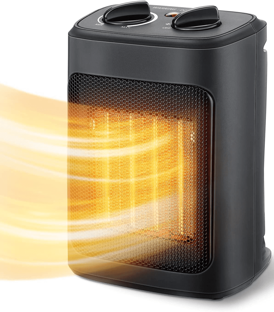 You’ll need something that can provide short bursts of hot air if you live somewhere where your house gets quite chilly in the winter; compact space heaters work well for this.